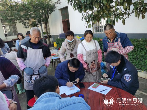 嵩明公安以“科级领导包村(居委会)、民警包自然村、辅警协助工作”的方式,将县局907名民辅警下沉至全县75个村委会、446个自然村进行包保,每名警力利用休息时间每周至少深入辖区开展走访2次,充分激发全体民警和辅警“蛛网式”的宣传辐射效应,让反诈宣传不留死角、不漏一人。由政府牵头组织各村(居)委会层层召开工作部署会,发动辖区机关干部、村组干部、“红袖标”治安志愿者、网格员加入到本次活动中,推动反诈宣传由“独角戏”向“大合唱”转变。县公安局机关警力与派出所民警捆绑作业,“手把手”教授群众安装注册使用“金钟罩”小程序和“国家反诈中心”APP,针对工业园区、花卉园区外来务工人员多的问题,民警“白天走”:遵循园区工作规律,集中警力开展工作;针对辖区群众早出晚归的问题,民警“晚上访”:通过灵活机动、错时入户的方式一对一、面对面开展宣传。