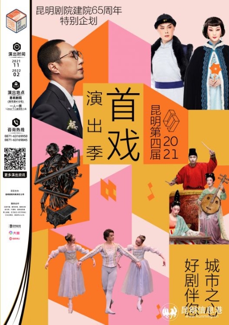 此外,11月28日起,「2021昆明第四届首戏演出季」正式拉开帷幕!至2022年2月,继北京京剧院《大宅门》后,《琴为何物·孤烟直·唐——自得琴社写意乐集》、《赵鹏·行吟2021“一期一会”音乐会》、王牌编导超强阵容上海芭蕾舞团《天鹅湖》等多场精彩演出将在全新的昆明剧院·大剧场接连上演,想要观看的市民朋友可通过“昆明剧院官方微信公众号”及微信小程序在线选座购票,还可以通过拨打昆明剧院售票电话0871-63169950或直接到售票窗口现场购票。