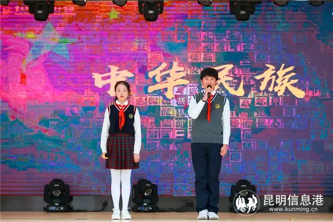 星耀学校小学部毕业生、现就读于中学部初二年级的马竟豪,和小学部六年级的张萌恬,一起带来《读中国》朗诵:“读中国,你会越来越爱这片神奇的土地;读中国,你会越来越亲这里的每一寸山河。我爱你中国,我爱你中国!”热烈的掌声响起来了。