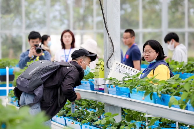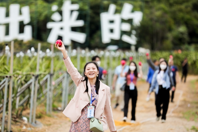 时而穿行弯弯曲曲的绿道,时而深入绿影婆娑的树林……在错落有致的村庄、河流、田洋中穿行,感受充满乡土地文化的清闲自在。采访团走进大茅远洋生态村,可以看到智能温室、大茅朴宿、田园餐厅、丛林探险乐园、房车营地等几大区域,儿童小火车、植物科普、绿道骑行、果园采摘等游玩项目一应俱全,大家置身其中感受自然、享受着片刻清闲。