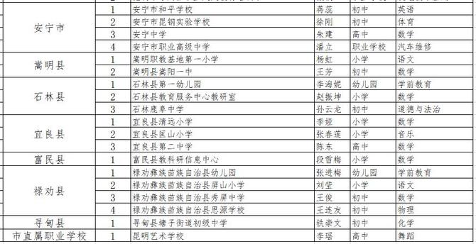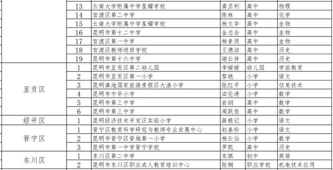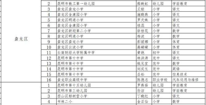 昆明市2021年中小学教坛新秀拟命名名单