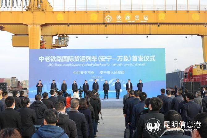 安宁是区域性国际中心城市西线经济走廊,也是面向南亚地区对外开放的陆路门户枢纽,其铁路货运需求量约占昆明铁路货量的三分之一。与陆路货运相比,铁路货运具有成本低、用时短的优势。今天的首发仪式,寄托着安宁人民收获友谊的美好期待。“安宁制造”将通过中老货运班列连接老挝、泰国,辐射东南亚各国乃至全球。安宁——万象中老铁路国际货运列车开行后,会大大降低原材料采购价格,增强产业竞争力,搭上中老铁路上的高速列车,安宁的发展将更加行稳致远,“区域性国际中心城市西线经济走廊”“滇中最美绿城”“中国西部县域高质量发展标兵”的建设步伐将迈得更加坚实有力。