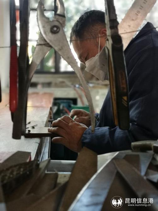 走进官渡古镇的乌铜走银传习馆,古色古香的展架上,精致的作品琳琅满目,任意拿起一件都可让人为其美妙的纹理啧啧称奇。里面的操作台上,几位匠人聚精会神于手里的物件,或轻轻捶打,或细细雕琢,专注的神情里透出对这门艺术的尊重和虔诚。