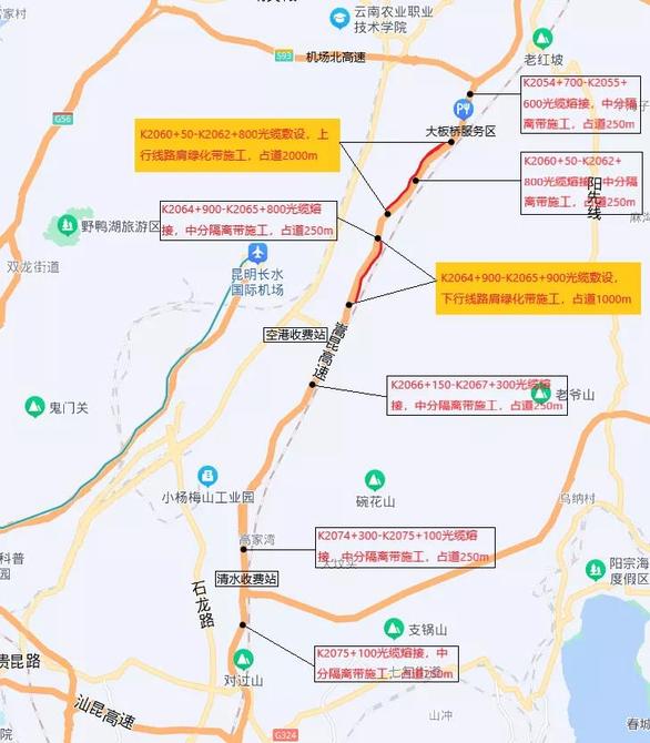 占用嵩昆高速(清水收费站至大板桥服务区)部分路段进行通信光缆改造施工,具体如下: