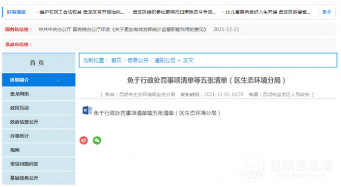 据了解,盘龙区推行的第一批容错纠错柔性执法“五张清单”涉及市场监管、环境保护、城市管理、交通运输、卫生监督、教育体育和农业农村等关系群众切身利益的重点领域问题共1081项。其中包括“免于行政处罚清单”涉及217项、“从轻处罚清单”涉及189项、“减轻处罚清单”涉及161项、“从重处罚清单”涉及498项、“免于行政强制清单”涉及16项。