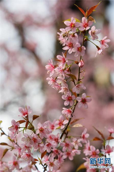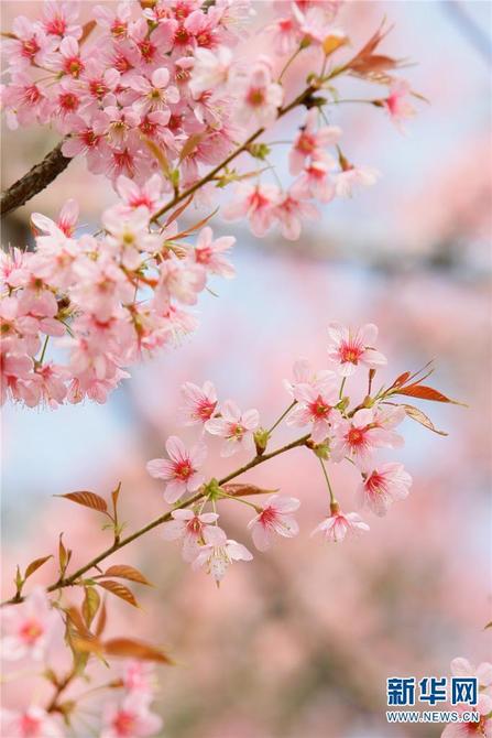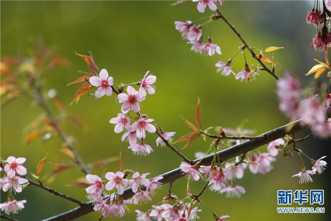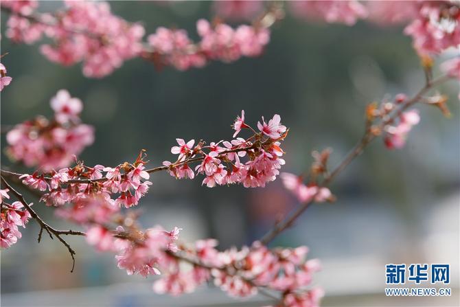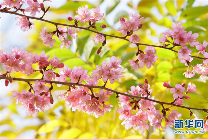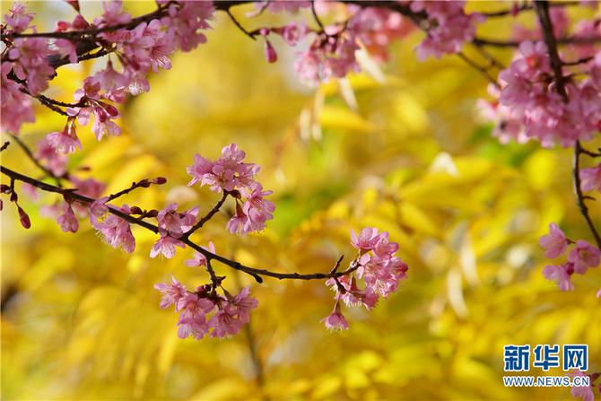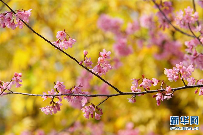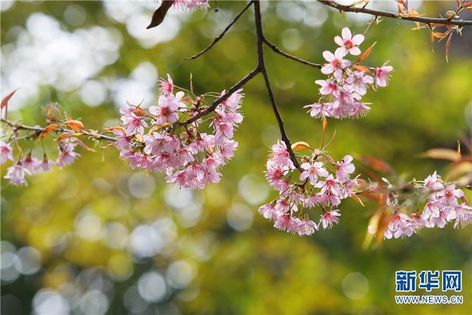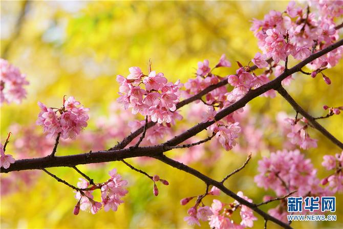 12月21日,拍摄于云南省曲靖市文体公园的冬樱花。(杨俊鹏 摄)