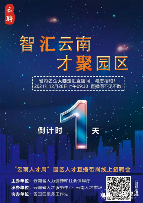 本次招聘会的线上直播招聘正常进行,时间仍为12月28日上午9点半。招聘会以滇中新区、昆明高新区(云南省高层次人才创新创业园)、中国(云南)自贸区昆明片区(昆明经开区)的企业需求为重点,三区联动开展园区人才专场招聘。
