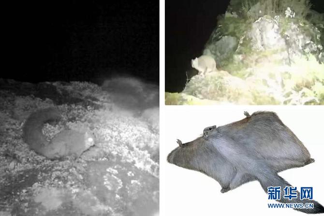 雪山羊绒鼯鼠,羊绒鼯鼠属新种,发现于云南省怒江州贡山县。虽然是羊绒鼯鼠,但网友们却称其为“雪山飞狐”,这是为什么呢?据悉,鼯鼠是一种夜行动物,可在大树和悬崖间滑翔,民间不少群众将其称为“飞狐”,加之这一新物种的栖息地有半年时间都被积雪覆盖,故而被称为“雪山飞狐”。图为拼版图片,分别为监控摄像头拍摄到的雪山羊绒鼯鼠、手绘雪山羊绒鼯鼠(资料图片)。新华网发(高黎贡山国家级自然保护区 供图)