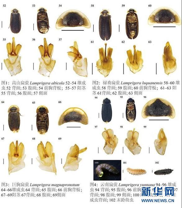 在生物多样性居全国之首的云南,不少地方都能见到萤火虫闪亮的身影。今年以来,科研工作者还发现了3个萤火虫新种,分别为高山扁萤、禄劝扁萤、巨胸扁萤。据悉,扁萤属仅分布在喜马拉雅山脉周边国家和东南亚国家,雄成虫可持续发较弱的绿光,雌成虫则可持续发较强的绿光。新华网发(中国科学院昆明动物研究所 供图)