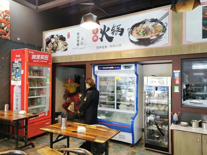 李春莲说,疫情发生以来,由于蓝光天娇城在他们所监管的片区,为了排除周边居民的买菜和就餐顾虑,让周边的市民能够吃得安心放心,他们管理所采取四人为一小组的方式,对辖区的商户经营户进行逐一检查。