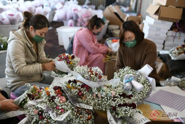 “现在引进了一些设备,把玫瑰花烘烤干,可以让它长时间保存,我们目前有30多名附近的员工,带动了周边村民的就业。我们各个店的销量比较稳定,平常一天差不多2000个单左右,遇到过年过节的时候一天差不多5000个单左右,今年的年产值差不多1000多万元。”小伍花卉经营部负责人伍洋红介绍。
