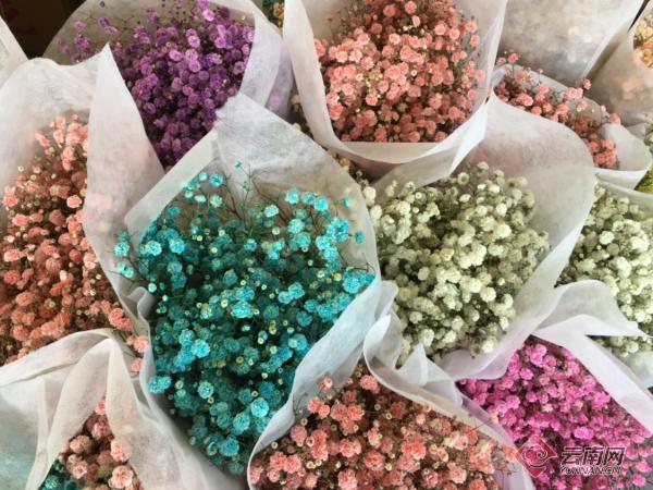 “鲜花满天星价格忽高忽低的,经过加工以后的永生满天星,价格基本没有什么变动,一年四季保持这个价格。另外我们搭配各种鲜花做成精美花束在互联网上销售,就是每年的产值的话,单量可以达到十几万单。”徐兴海说。