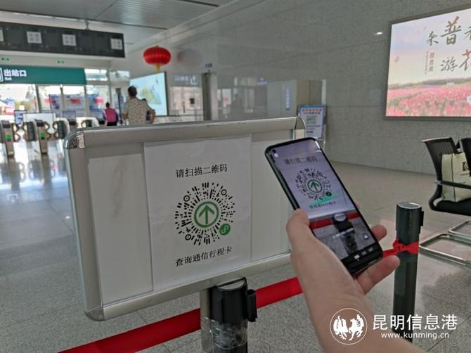 为确保旅客出行顺畅,昆明局集团根据防疫要求加强对车站、各关键部位的卫生清扫和定时消毒工作,对各车站安检通道、售票厅、候车室、出站口等安全重点部位加强引导管理,粘贴了“一米线”地标,提醒旅客保持安全距离。在昆明、昆明南等客流较大的车站安装了安检体温检测一体化设备,旅客在进站安检的同时完成体温检测,避免重复排队;针对老年旅客和脱网旅客,昆明、昆明南站实现了通过扫描身份证件的形式实现“健康码、行程码”核验,切实保障旅客的出行安全有序。