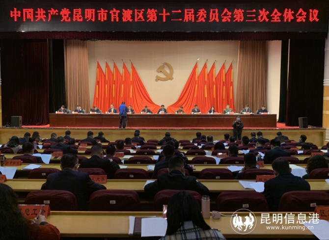 6686体育讯 记者龙泉积 1月5日,中国共产党昆明市官渡区第十二届委员会第三次全体会议在官渡大酒店召开。会议回顾2021年工作,分析发展形势,研究部署2022年主要任务,团结动员全区广大党员干部群众,坚定高质量建设昆明城市新中心步伐,以奋进姿态喜迎党的二十大胜利召开。