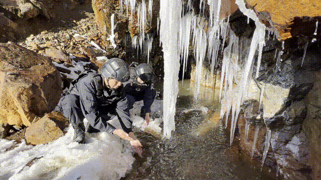 山上气候复杂多变,尤其是太阳落山后,站在户外没多久,执勤人员衣服上结了冰,眉毛变白了,脸上挂上了霜,手冻得直哆嗦,可民警脸上没有一丝抱怨。