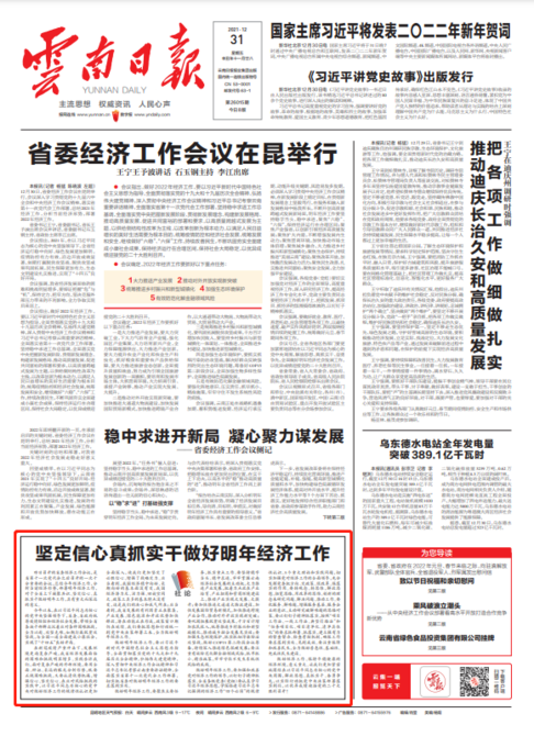 省委经济工作会议对2022年云南经济工作“怎么干”作出了部署安排,明确了必须统筹抓好的5个方面重点工作。全省各级党委(党组)要切实加强和改善党对经济工作的全面领导,充分发挥党委把方向、定政策、促改革、保落实的作用,以钉钉子精神抓好落实,确保党中央、国务院的决策部署和省委、省政府的工作要求落到实处、见到成效。