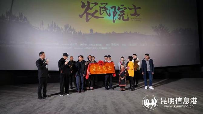 电影《农民院士》总导演于荣光与到场嘉宾及观众分享了在蒿枝坝村拍摄的难忘经历,并与制片人蒋晓荣和澜沧县群众代表共同为朱有勇送上“农民院士”牌匾,致敬时代楷模。