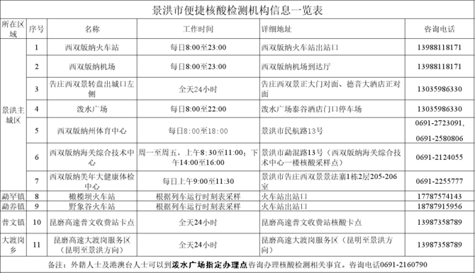 附件:景洪市便捷核酸检测机构一览表