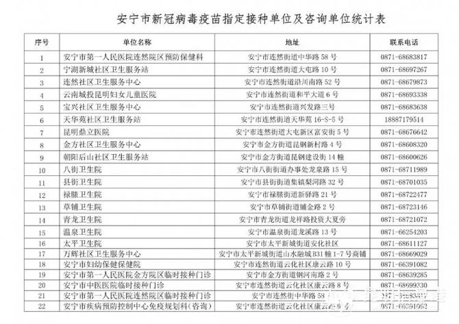 6686体育讯 记者杨雁 按照省市新冠疫情防控指挥部关于新冠疫苗接种工作的统一部署,2022年1月12日开始,安宁市将恢复3周岁及以上人群新冠疫苗的接种工作。