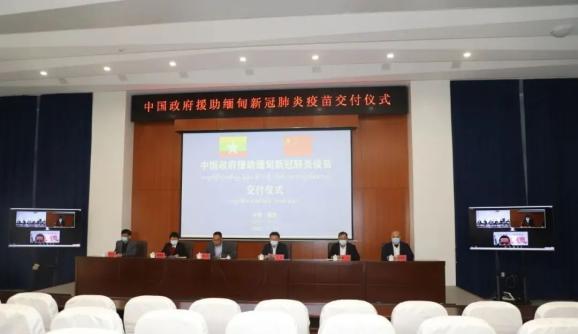 1月12日,中国政府新一批援助缅甸新冠肺炎疫苗交付仪式在我州举行,并经瑞丽、盈江、章凤口岸将疫苗顺利交付缅方。