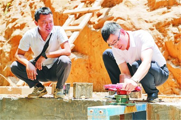 上海松江援滇干部王福友在布朗山乡的人畜饮水工程项目现场工作
