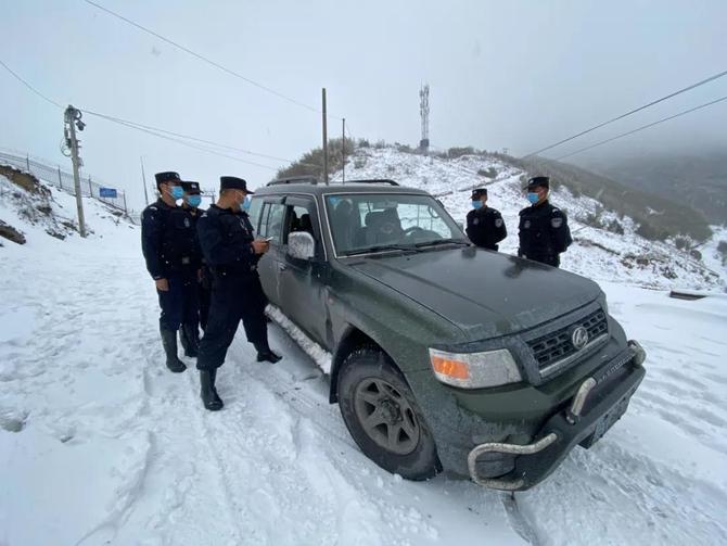 云南腾冲自治附7号界碑普降大雪