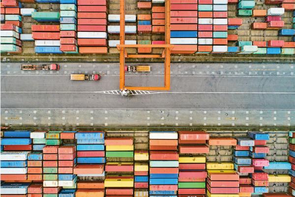 四川宜宾港依托物联网、5g 通信、可视化、智能化等先进信息技术,将传统码头升级改造成为智慧码头,全面提升港口智慧化、信息化作业水平。图为集装箱卡车在宜宾港集装箱码头往来穿梭,有序作业。 求是图片 庄歌尔/摄