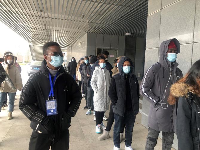 天津启动全员核酸检测后,天津职业技术师范大学国际学院辅导员郭梁微信收到了埃塞俄比亚博士研究生艾华和贝宁本科生约翰的“请战书”——他们希望参加全校核酸检测的志愿服务工作。