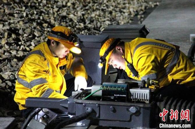 凌晨0:30,天窗修作业命令下达,他们进入作业场地,打开设备箱盒,检查、注油、测量、整治……黑寂的夜晚,唯有他们黄色的身影在闪动。