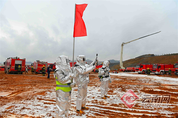为做好重特大化工灾害事故的应急救援准备工作,进一步锤炼消防救援队伍处置化工类火灾的指挥水平和实战能力,1月17日,云南省消防救援总队组织昆明、曲靖、楚雄、玉溪、红河、大理支队6支重型化工灭火救援编队及地方应急、公安、交警、医疗、供电、环保、通信等应急联动单位,通过“实地作战演练+远程视频参演”的形式在曲靖市马龙区虹桥工业园区开展化工灾害灭火救援作战效能测试暨实战演练。