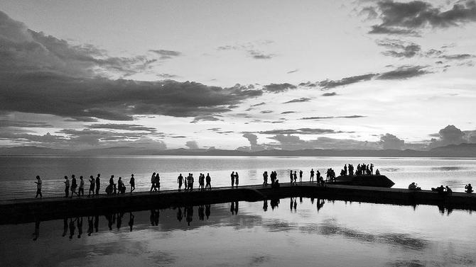 步入海晏村滇池长堤,水天一色的滇池美景一览无余。本报记者 陈飞 杨峥 摄