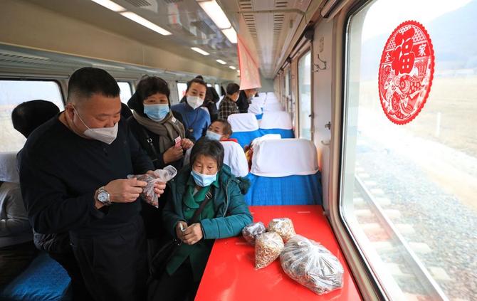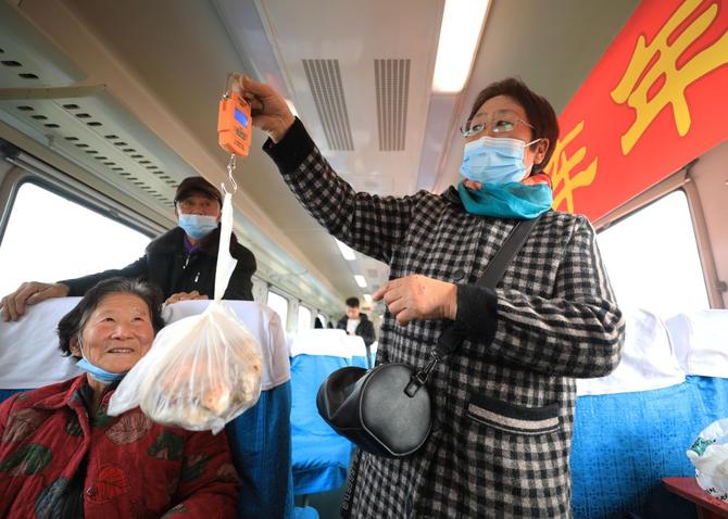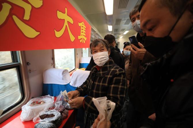 近年来,中国铁路沈阳局集团有限公司推出了15项惠民服务举措,包括在特定车次允许山区旅客突破携带品重量限制、开办列车集市等,积极主动为乘车的乡村百姓办实事、解难题。(新华社 记者杨青)