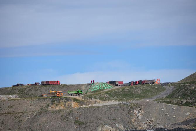 这是工程车辆在木里矿区进行整治作业(2020年8月31日摄)。新华社记者 王浡 摄