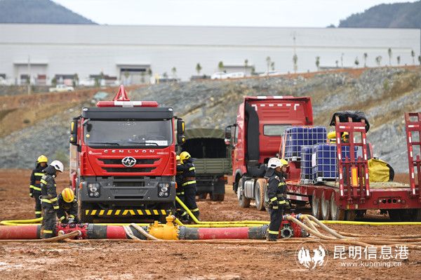 昆明支队重型化工灭火救援编队分别开展了的“自载、耦合、外吸、输转、远程供液”5种综合供液模式的实战科目演练,有效检验了昆明支队重型化工编队人、车、机的作战能力,切实解决了化工灾害灭火救援现场传统 “痛点”“难题”,从而实现化工编队最大作战效能发挥,全面提升编队灭火能力。
