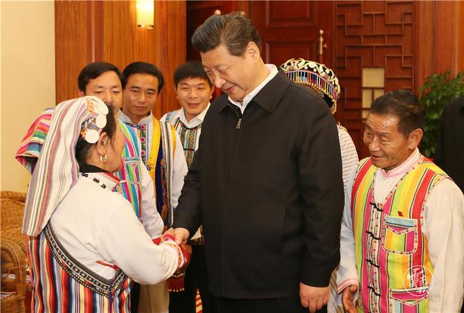 习近平在昆明亲切会见怒江州贡山独龙族怒族自治县干部群众代表。