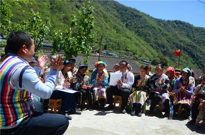 云南省贡山县独龙江乡干部群众一同宣读学习习近平总书记的回信。