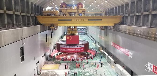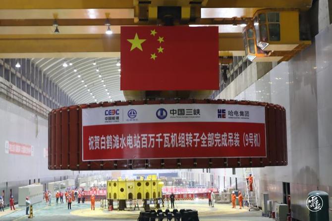 1月18日,中国能建葛洲坝机电公司承担安装与调试的世界在建装机规模最大的水电站——白鹤滩水电站最后一台百万千瓦水电机组(9号)转子吊装就位,标志着电站16台百万千瓦水电机组转子全部安装完成。