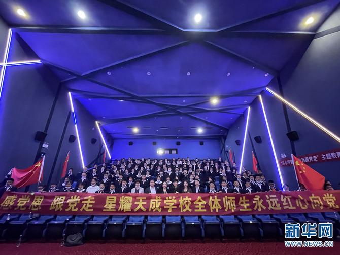 昆明市官渡区星耀天成学校百余名中学生观看《九零后》(2021年5月27日摄)。新华网 柴静 摄