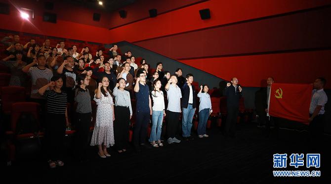 云南省纪委省监委举行电影党课活动现场,党员重温入党誓词(2021年5月14日摄)。新华网 陈晓阳 摄