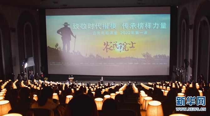 云南电影课堂2022年第一课暨以“致敬时代楷模 传承榜样力量”为主题的电影《农民院士》首映式活动举行(2022年1月9日摄)。新华网发(王超 摄)
