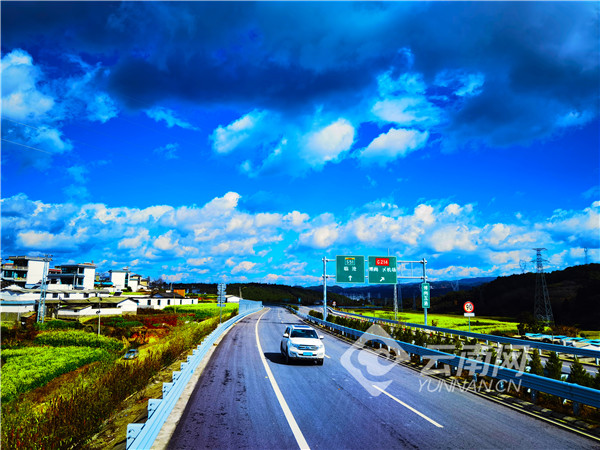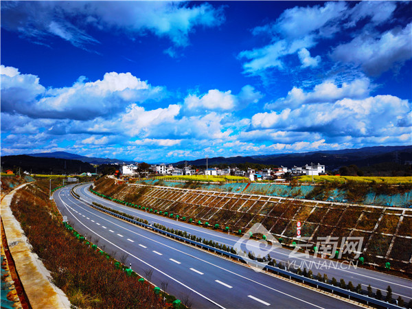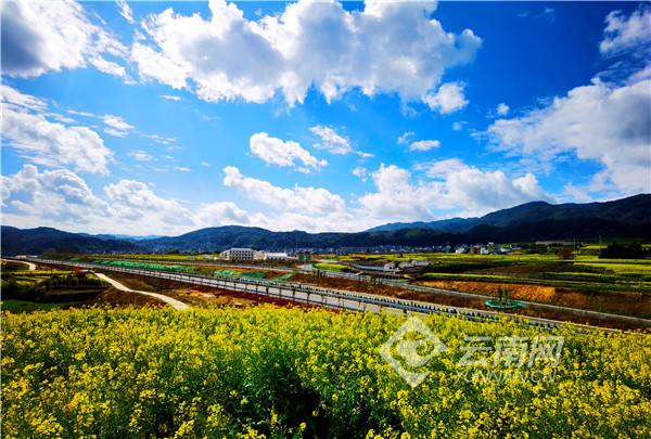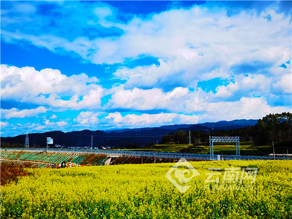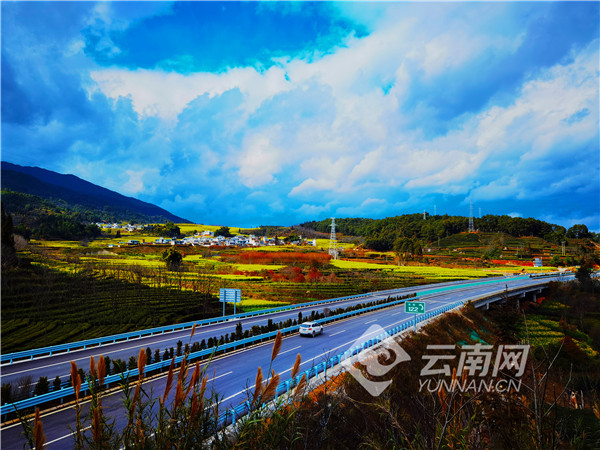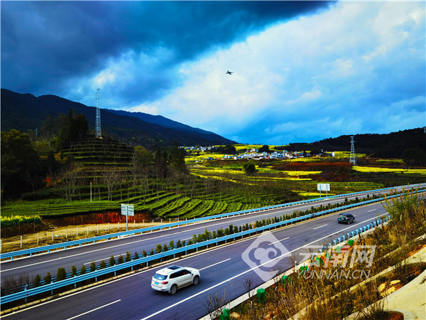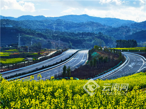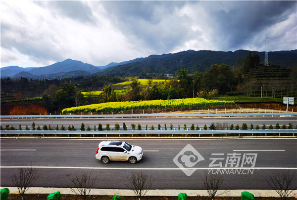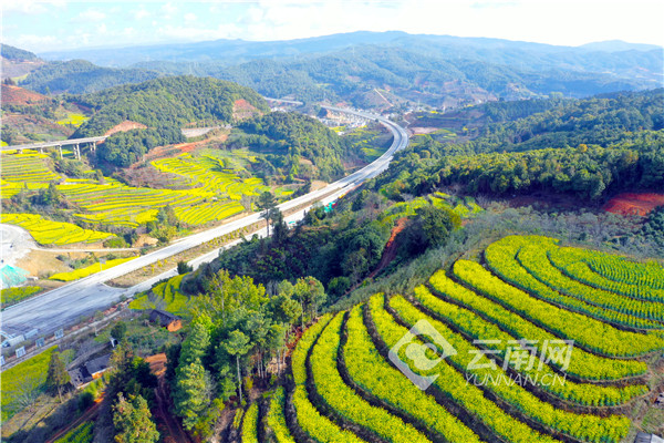 虽是隆冬时节,但临沧市博尚镇万亩油菜花开得正艳,金灿灿的油菜花把临翔至双江高速公路已建成路段打扮成了一条鲜花大道。
