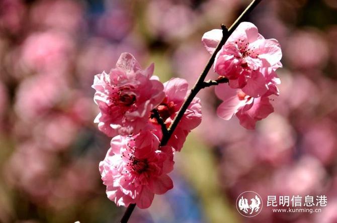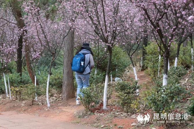 春节期间,游客来到郊野公园,不仅可以欣赏到美人梅,还可以欣赏到西府海棠、杜鹃花、日本樱花等,在蓝天白云的映衬下,将早春气息装扮一新,别有一番风味。