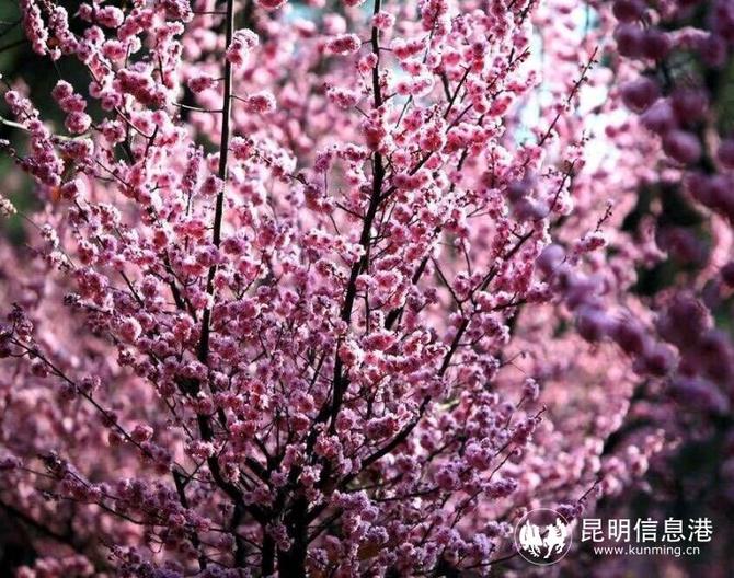 有美人兮见之不忘,一日不见兮思之如狂。能在梅花中被称为美人的,果然不同凡响,每年2月,郊野公园里盛开的这种梅花,仔细一看,似梅花,又有点似桃花,原来它是美人梅。其实,美人梅是个“混血儿”,是1895年在法国以红叶李与重瓣宫粉型梅花杂交而成,1987年引入我国。