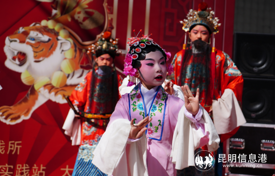 京剧作为中华优秀传统文化,要传承与发扬得靠老少相承、薪火相传,才能让京剧艺术之花长盛不衰。活动现场,13名来自昆明市红领巾少儿戏曲培训中心的小演员亮相舞台,其中年纪最小的仅4岁,为现场观众带来京剧《穆桂英挂帅》《珠帘寨》《雏凤凌空》经典唱腔演绎,通过国粹艺术,为即将到来的新春佳节增添喜庆年味儿,表演赢得了现场掌声不断。