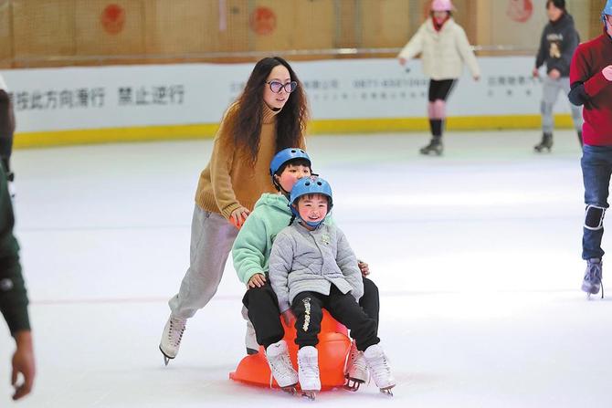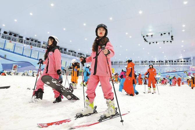 昆明融创雪世界的冰雪运动吸引了众多青少年。