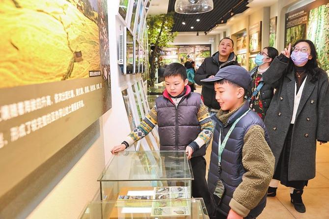 游客在高黎贡山宣教中心了解生物多样性保护。