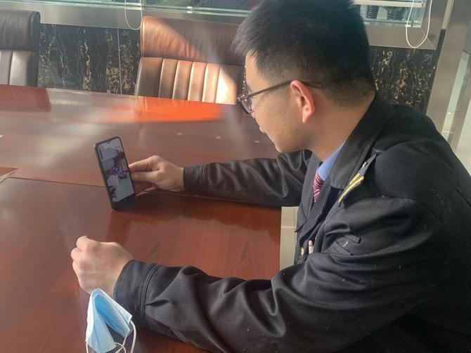 1月28日,黄云雷在与儿子视频。新华社记者王浡 摄