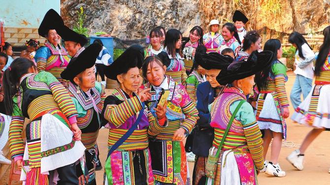 镇康县南伞镇苗族群众穿上节日盛装欢度春节。 本报通讯员 穆王成 摄