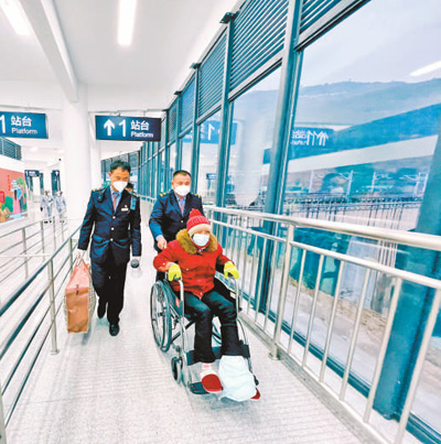 车站客运人员热心服务重点旅客出站。杨紫轩摄(人民视觉)