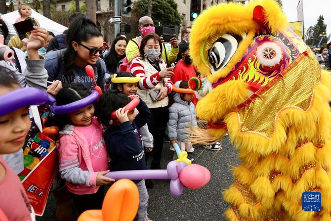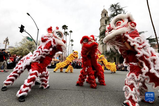 1月29日,人们在美国加利福尼亚州南部里弗赛德市举行的农历虎年新春庆祝活动上观看舞狮表演。新华社发